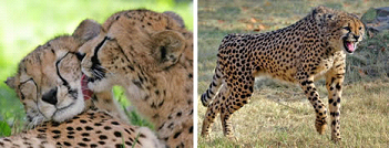 獵豹又稱(chēng)印度豹,是一種較大型貓科動(dòng)物。它們也是奔跑速度最快的陸上動(dòng)物,可以三秒內從靜止加速到每小時(shí)64英里(約合每小時(shí)103公里)的速度。它們腰部較細,胸部較長(cháng)。除了這些特點(diǎn)以外,它們眼角還會(huì )流下黑色的“眼淚”。這種“眼淚”其實(shí)就是從眼角到嘴角的兩條黑色條紋。與真正的大型貓科動(dòng)物不同的是,獵豹只能咕嚕咕嚕地發(fā)出喉音,但不會(huì )咆哮。