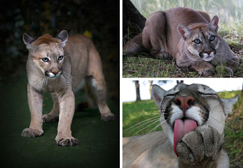 根據不同的生活地區,美洲獅也有許多不同的叫法。事實(shí)上,在英語(yǔ)中它們擁有40多種稱(chēng)呼,它們也因為擁有最多名字而被載入吉尼斯世界記錄。美洲獅和美洲虎體形差不多大,但是沒(méi)有美洲虎那么強大、那么健壯。雖然圖中這幾只美洲獅看起來(lái)好像和家貓一樣,但它們的體形事實(shí)上和一個(gè)成年人差不多大。因此,除了人類(lèi)之外,沒(méi)有其他物種可以捕食野生的成年美洲獅。