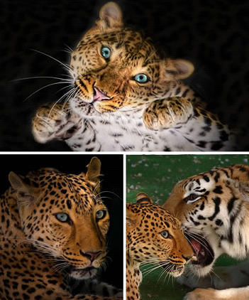 美洲豹與美洲虎很難辨認,常常被人們混為一談。美洲虎是繼老虎和獅子之后第三大貓科動(dòng)物,而美洲豹卻是這四種大型貓科動(dòng)物中最小的一個(gè)。美洲豹的頭部比美洲虎要小一些。它身上的斑紋也較小,而且數量多,分布相對密集,也沒(méi)有大多數美洲虎斑紋的中間點(diǎn)。兩者之間最大的不同就是它們生活于不同的大洲。攝影師維雅切斯拉夫將右下圖中的兩只美洲豹的親密行為稱(chēng)為“耳語(yǔ)閑談”。
